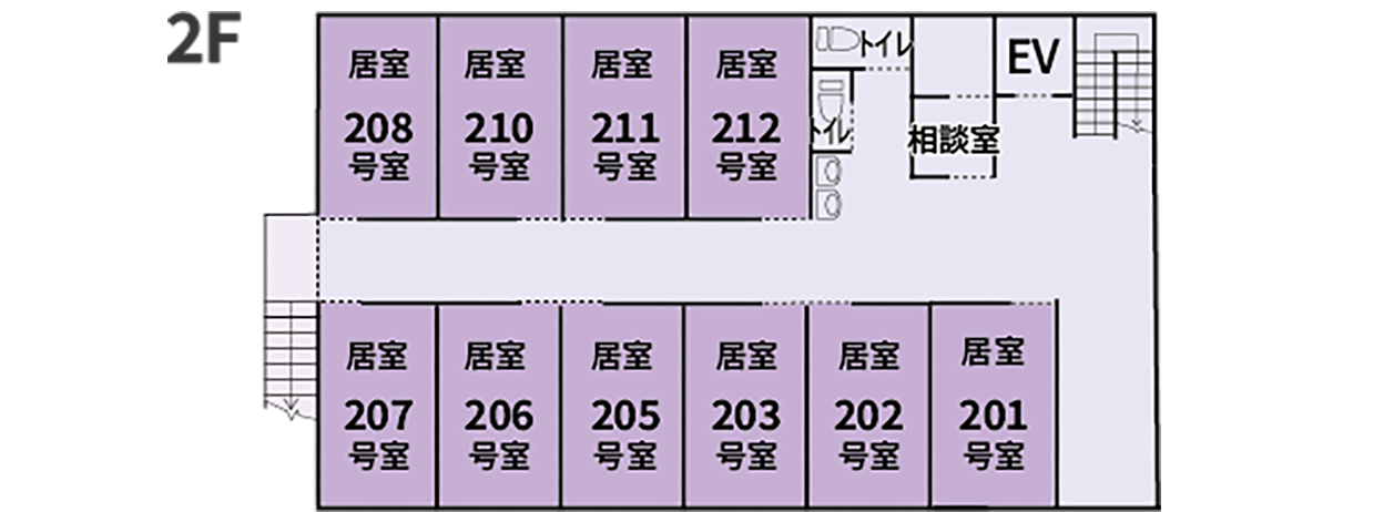 | 建物構造 | 2階建て 19室 全室個室(12.42㎡) |
